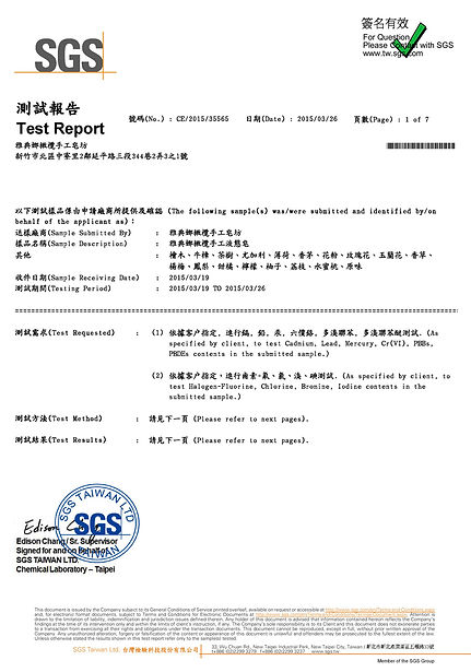 產品檢驗 ( S.G.S 認證 ) 2015年03月26